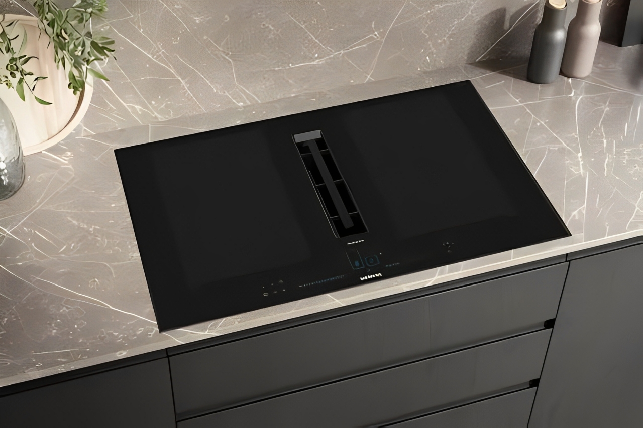 A vented hob combines a cooking surface with built-in extraction, drawing steam, odours, and grease down into the unit before they spread through the kitchen.