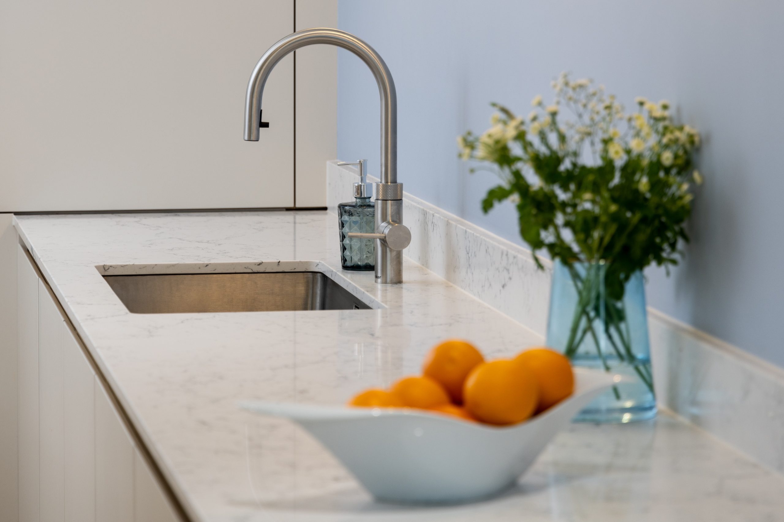 Extending units to the ceiling, where possible, simplifies cleaning and enhances visual flow. When ceilings aren’t perfectly level, discreet finishing details ensure the result still feels considered and refined.